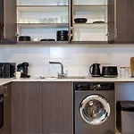 - ❓В этой квартире оборудована кухня?Да, в этой квартире есть оснащённая всем необходимым кухня, в которой предусмотрели кофеварку, духовку и кухонную утварь.
